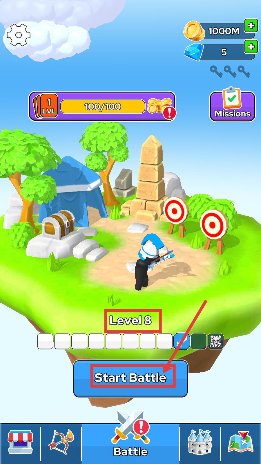 1、升级至【Level-8】后,点击【StartBattle】开启战斗,进入战斗场景准备迎战。