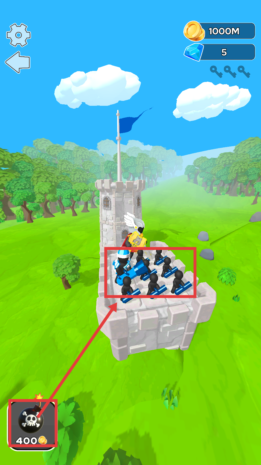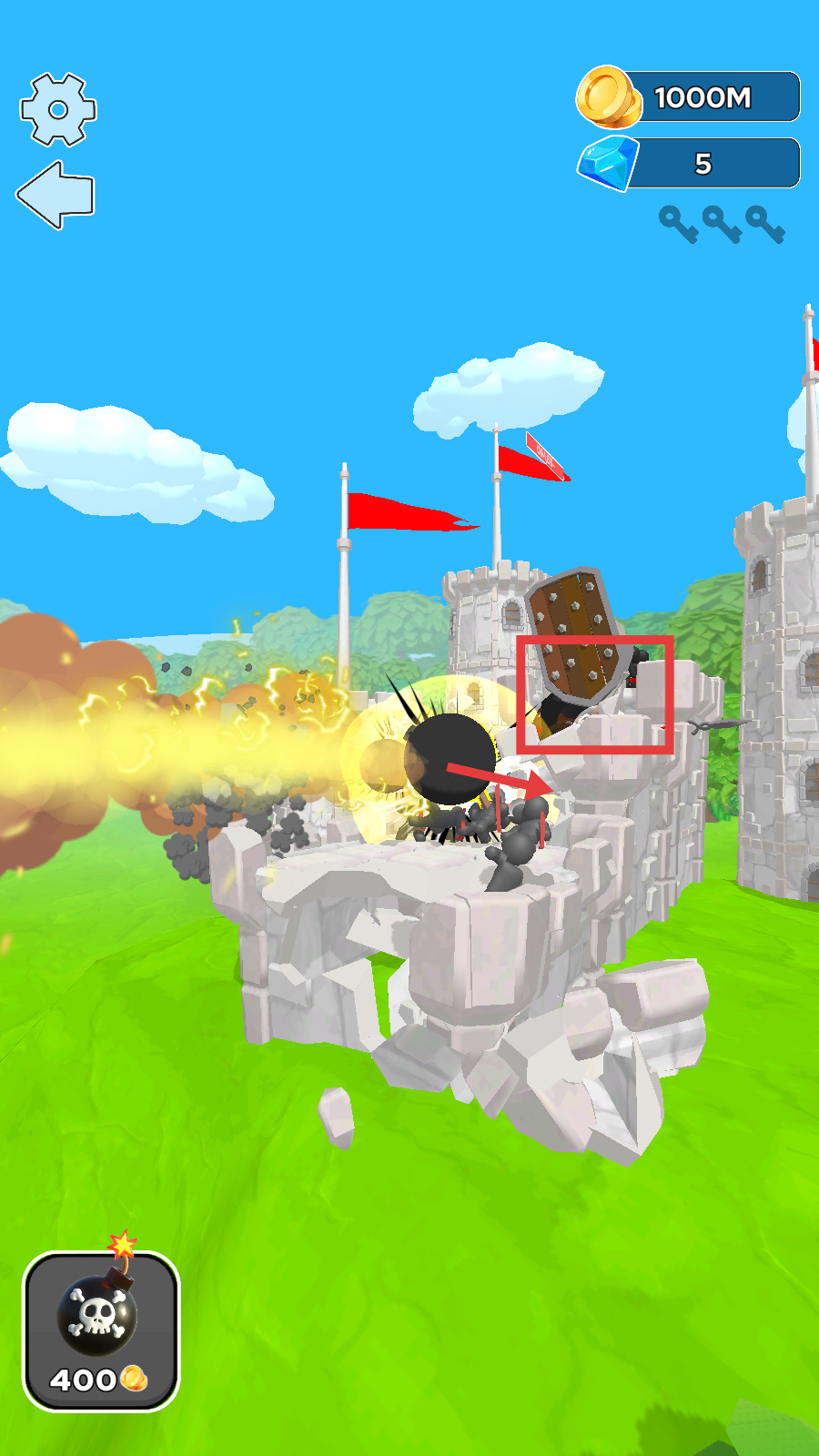 3、使用炸弹道具攻击敌方城堡,瓦解其防御并消灭敌方人员,快速推进战斗进程。