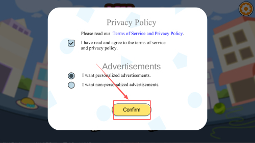 1、阅读隐私政策后勾选「I have read and agree」,选择广告偏好,点击「Confirm」确认。