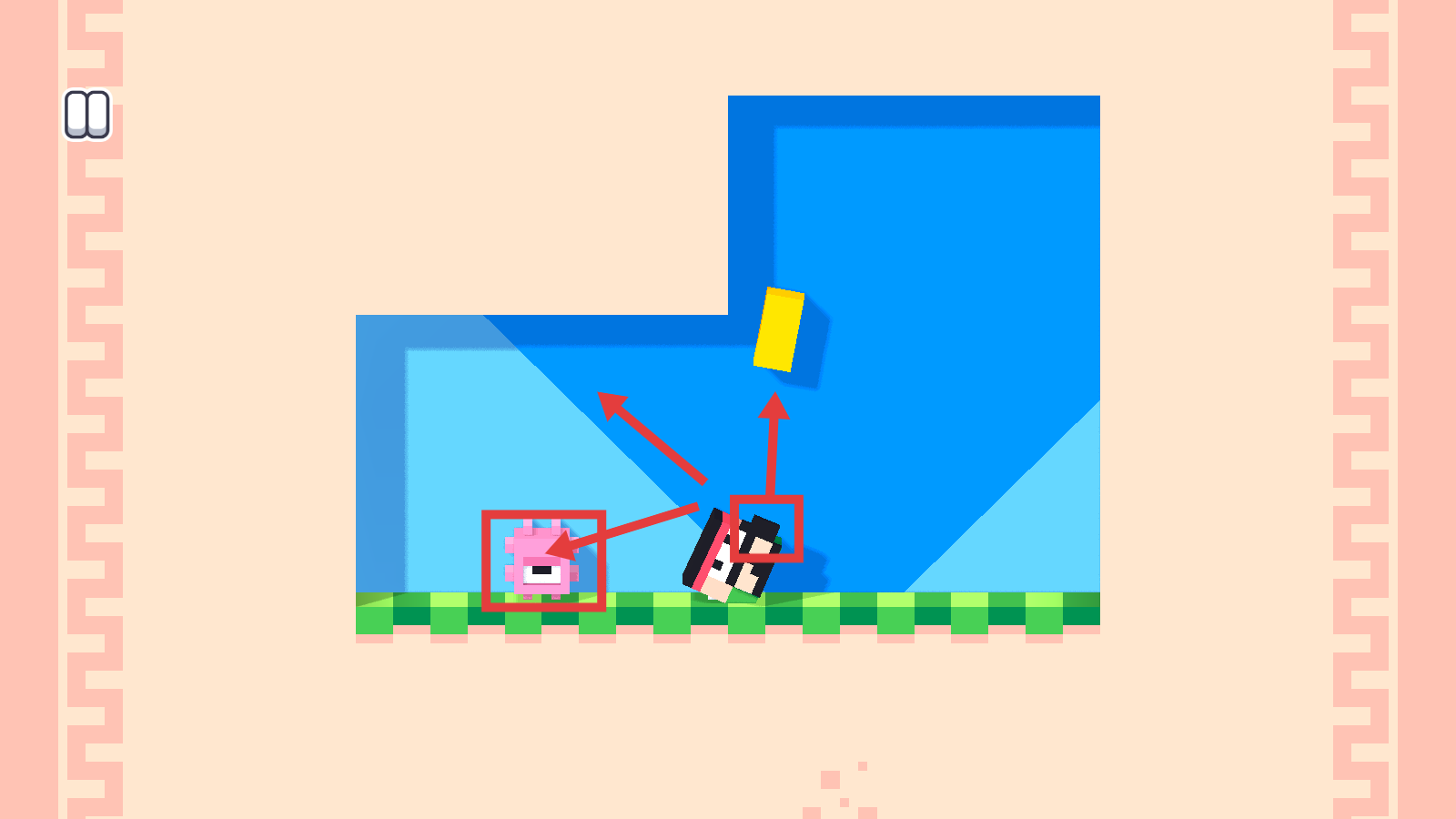 3、靠近粉色敌人并发起攻击,通过黄色子弹的后坐力改变枪口的位置解决敌人,提升通关效率。