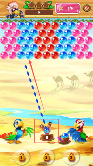 2、瞄准射击消除:仔细瞄准气球发射泡泡,通过匹配同色泡泡实现消除,击破囚禁幼鹦鹉的气球,完成解救任务。