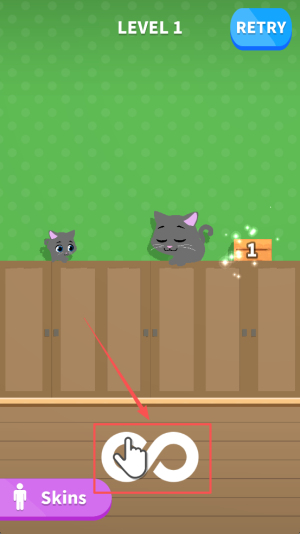1、进入「LEVEL1」后先点「Skins」确认外形,再轻触屏幕开始挑战。