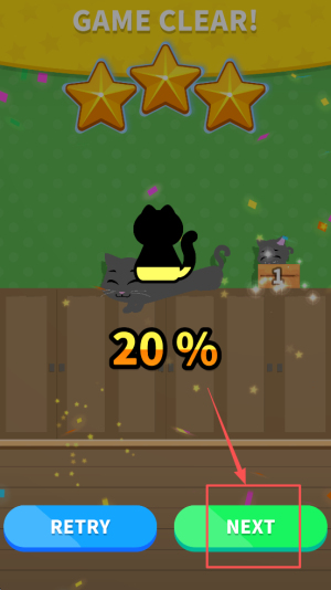 4、待「GAME CLEAR! 20.%」跳出,点「NEXT」直接晋级,或选「RETRY」刷新成绩。