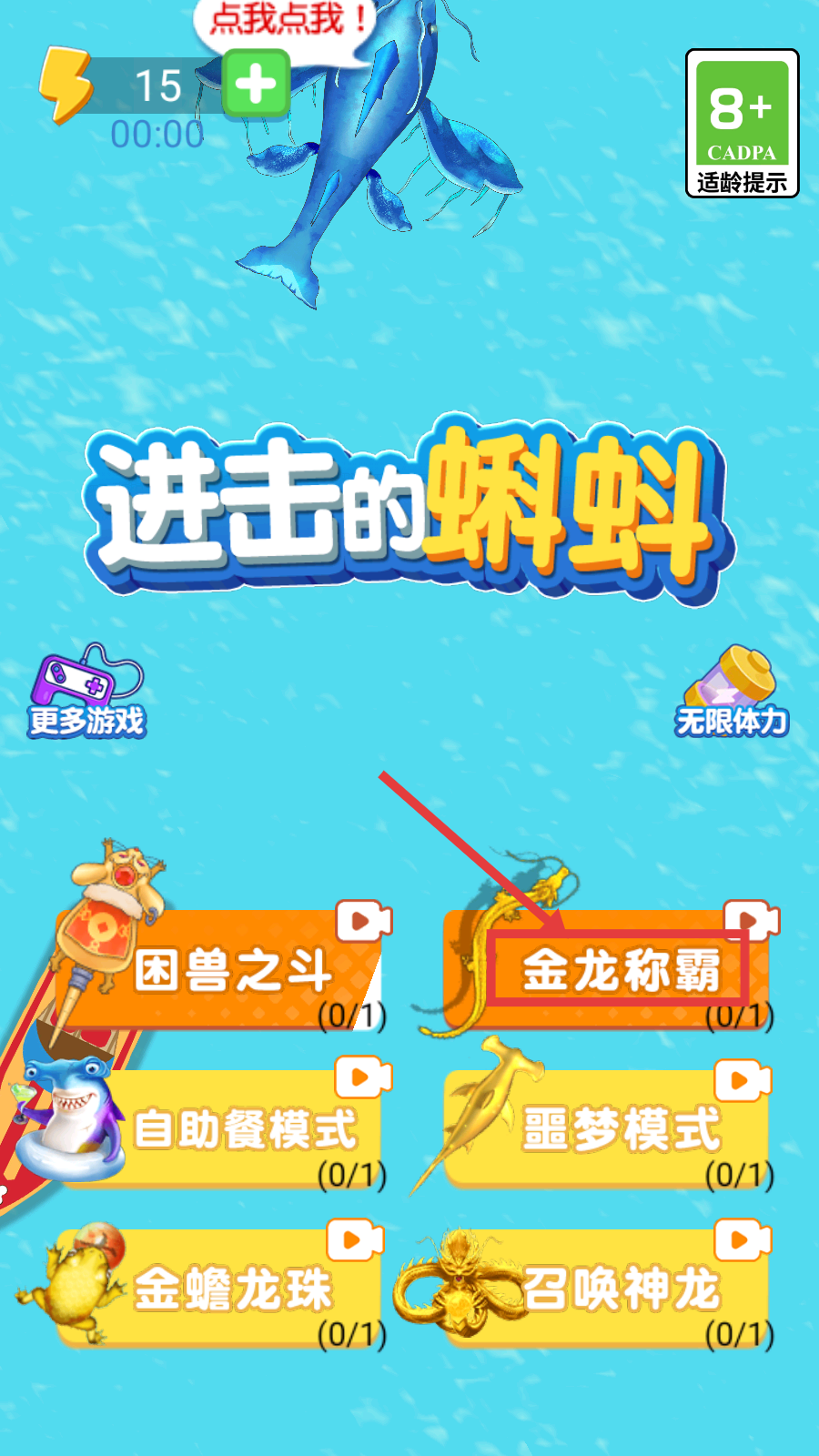 1、选择【金龙称霸】模式开始游戏,该模式可收集金龙,挑战限时任务,开启趣味玩法。