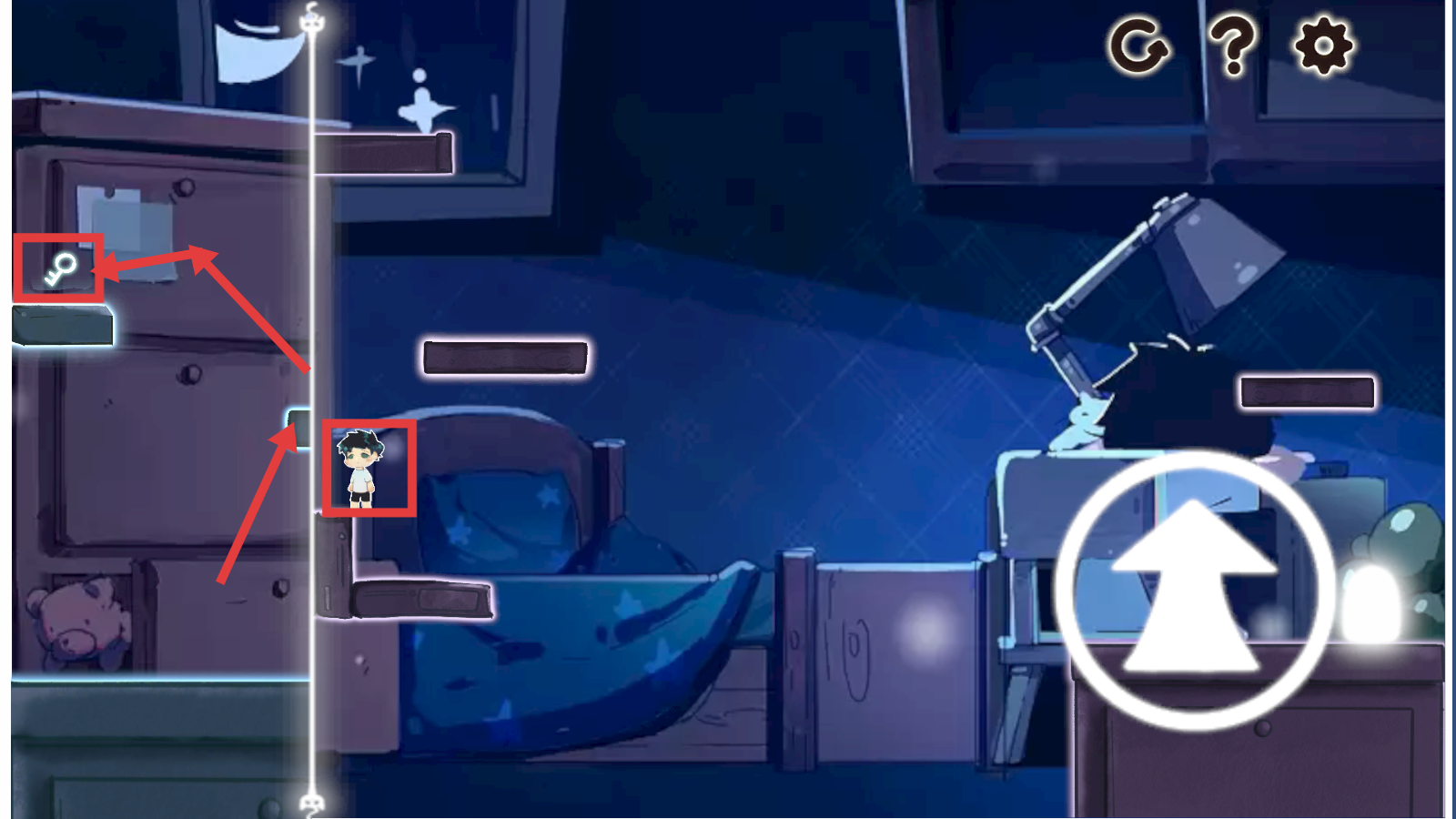 2、寻找并收集钥匙,按照箭头指引的路径移动,推进关卡进度,解锁新区域。