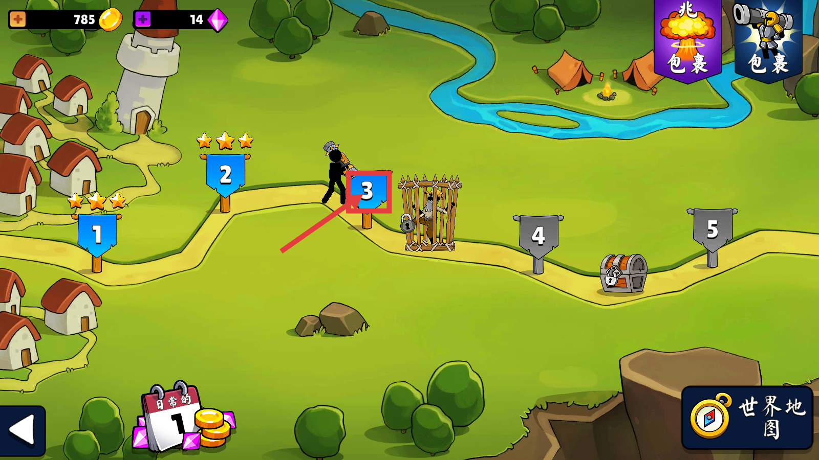 1、选择【3】关卡开始挑战,在地图中推进至该关卡,开启战斗冒险。