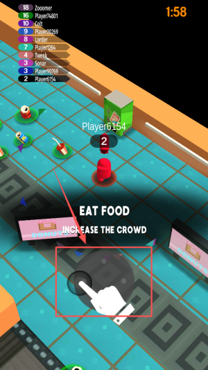 2、开局1:58内连吞DONUT,长度冲到16,人群数瞬间翻倍。