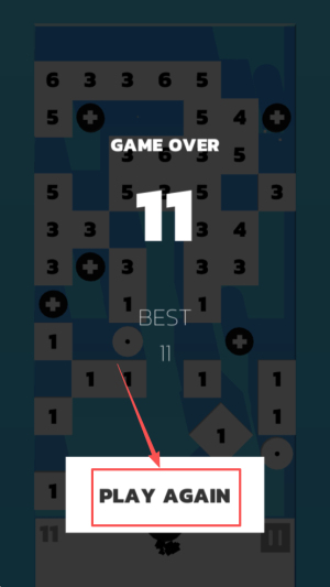 4、最后,若屏幕显示“GAME OVER”,可点击“PLAY AGAIN”重新开始挑战。