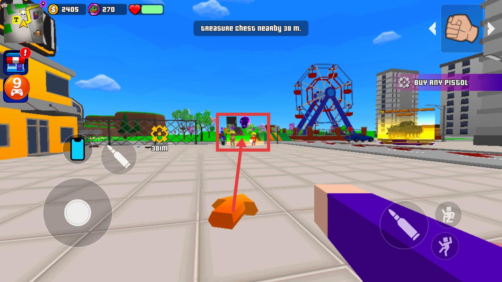 1、留意【treasurechestnearby-38m.】提示,前往宝箱位置,同时关注资源数值【$2405】【memecoin-270】,规划探索路线。