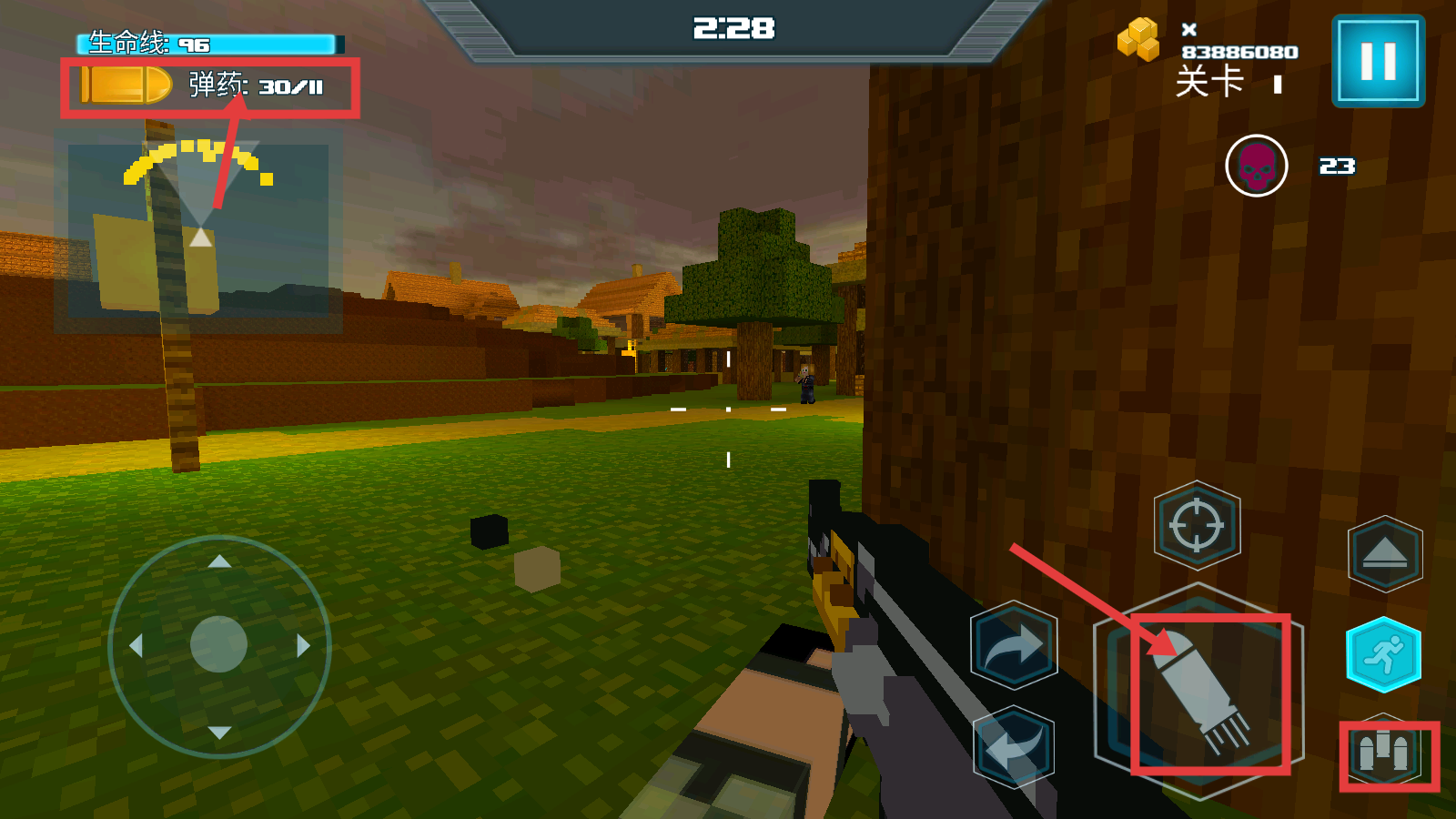 1、利用像素地形特性借高低差抢占视野,破坏支撑方块制造坍塌控场压制敌人。