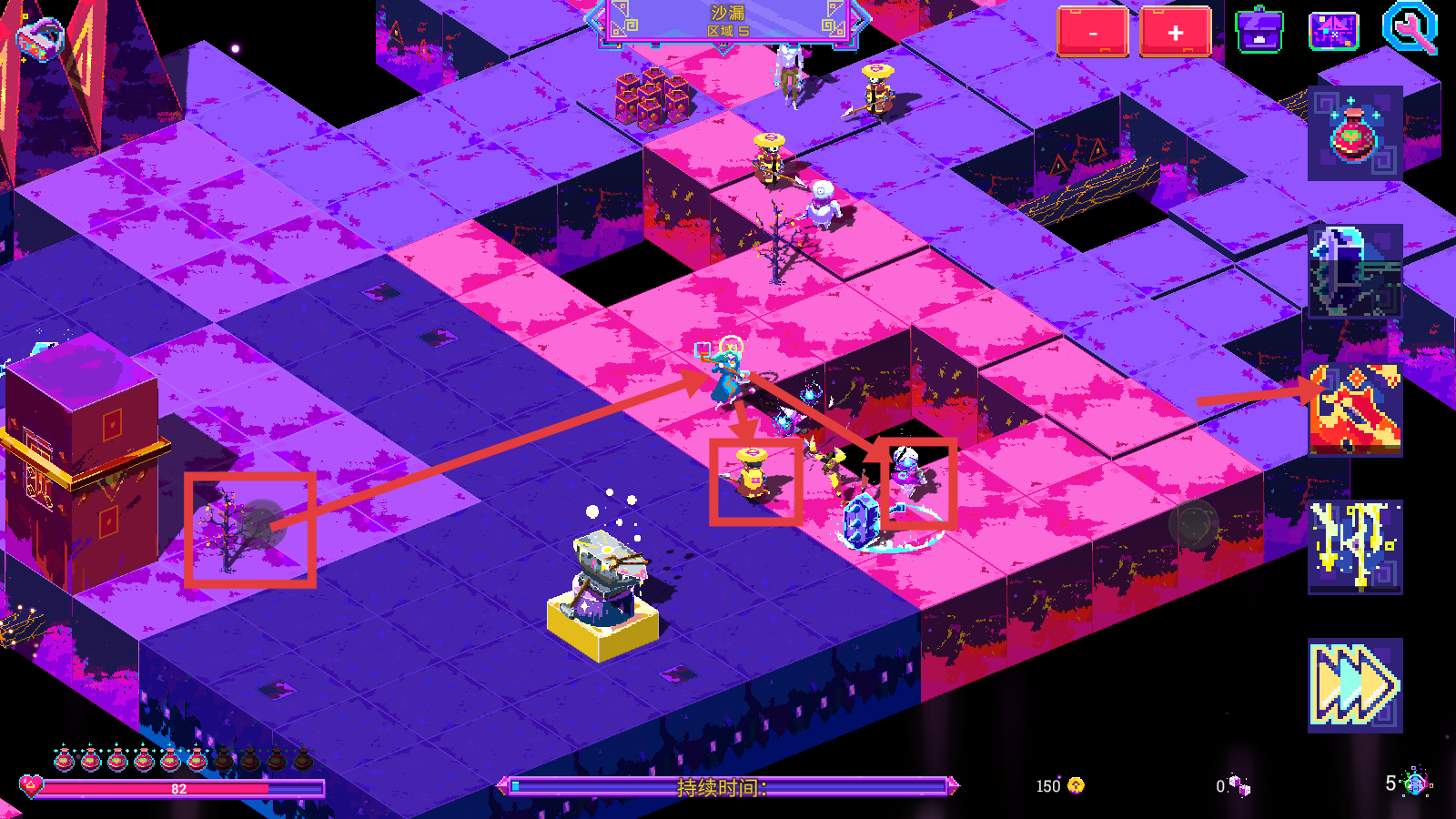 3、继续在区域内收集道具,关注【持续时间】,积累资源,提升进度至5/20。