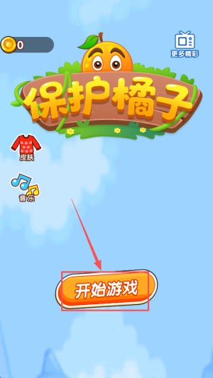 1、首先,点击“更多精彩 保护橘子 开始游戏”进入主界面,自动跳转至关卡1。