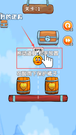 3、灵活应对挑战:关卡中密切关注物体动态,小心翼翼做出反应,及时调整防护措施,避免橘子遭受损伤。
