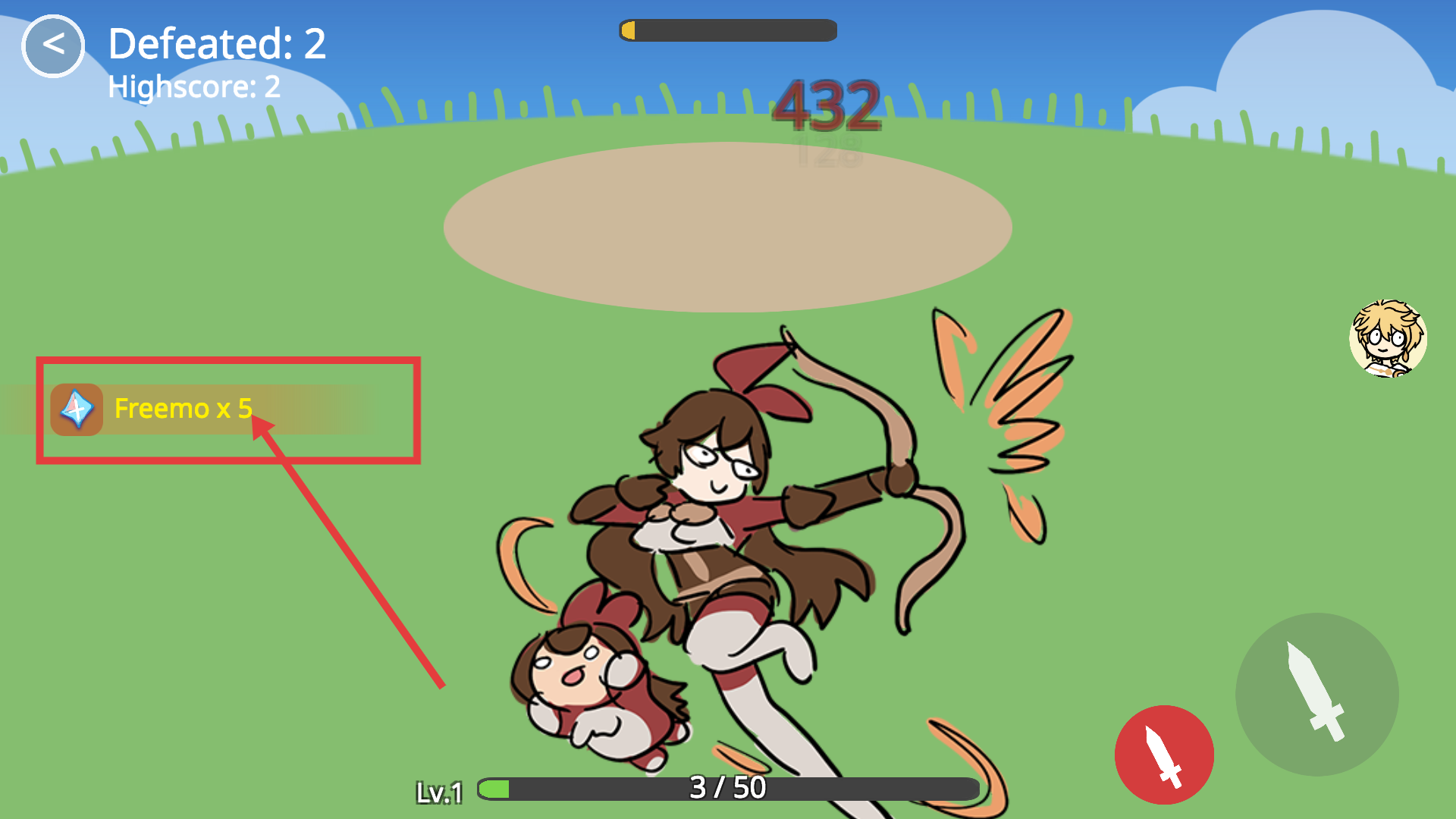 4、击败史莱姆后,获取【Freemo-x5】奖励,积累资源用于角色升级或解锁新内容。
