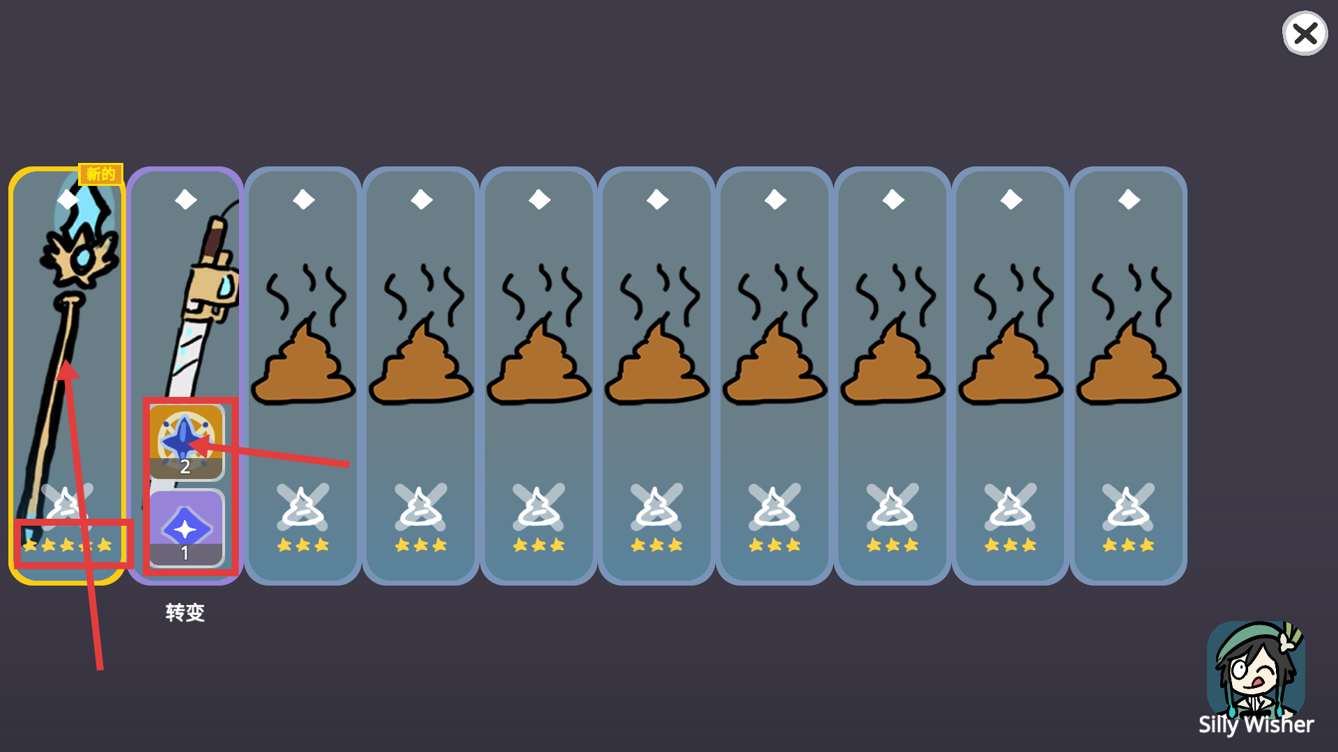 2、抽卡后获得【天空棍】,可通过转变道具提升效果,积累抽卡资源,继续参与祈愿。