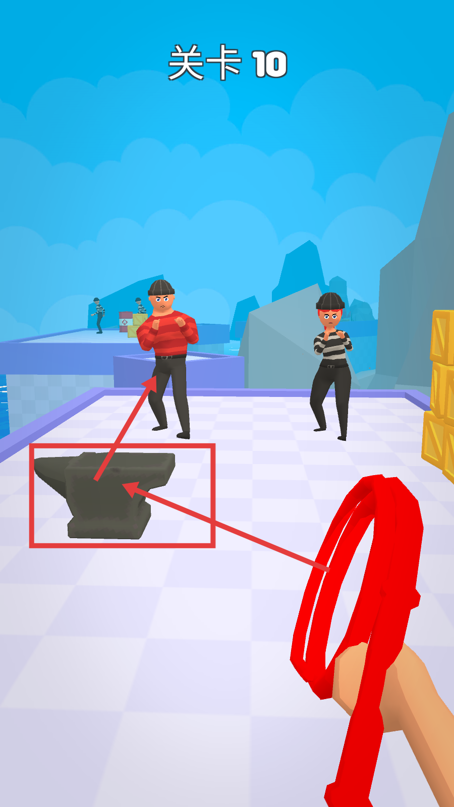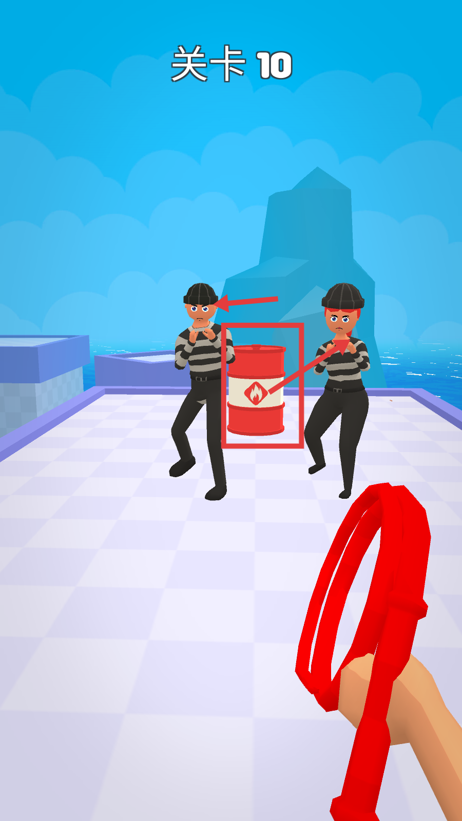 2、挑战【关卡10】时,优先关注场景中的【油桶-危险物品】,利用鞭子优先处理,避免被罪犯利用造成阻碍。