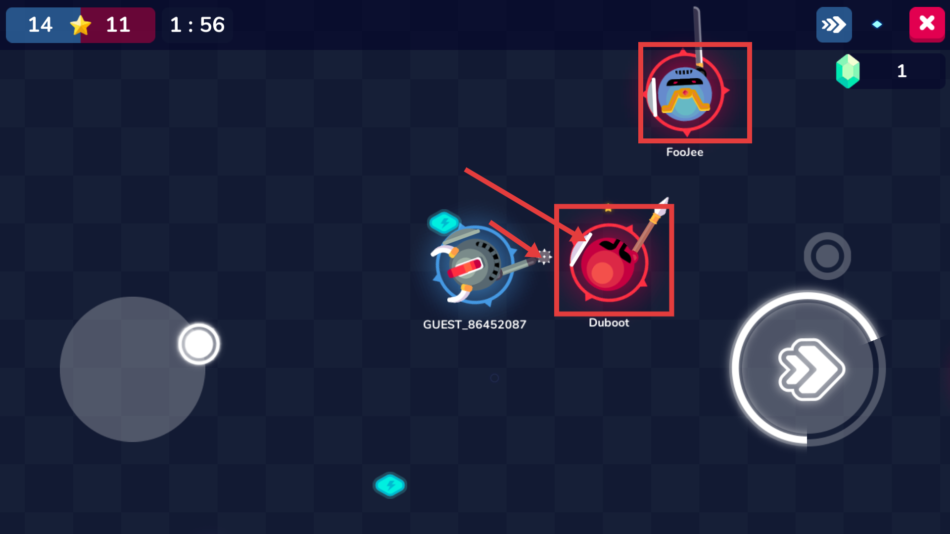 3、战斗中瞄准其他玩家(如Duboot、FooJee)发起攻击,击败对手以积累积分提升排名。