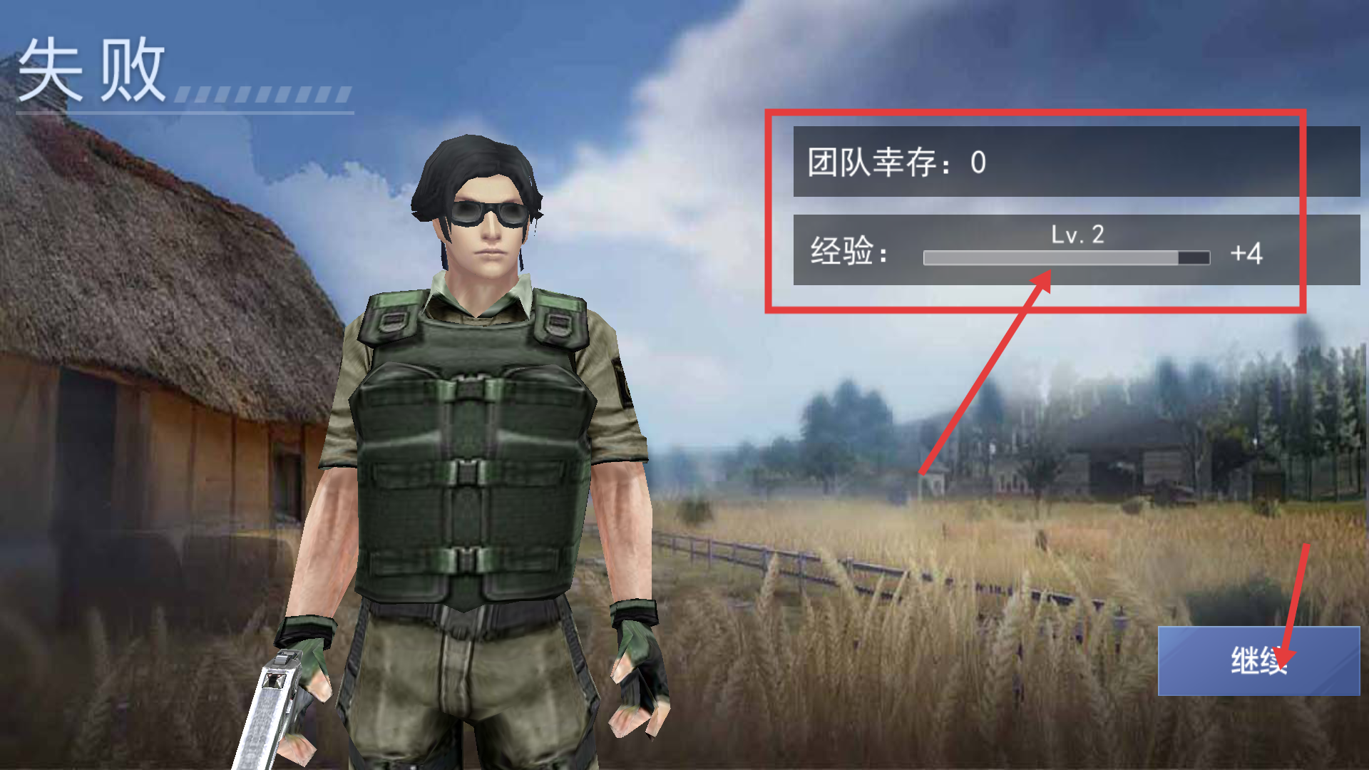 4、即使失败,也可获得【经验-Lv.2+4】,点击【继续】按钮,重新参与【恐怖躲猫猫】挑战,积累经验提升等级。