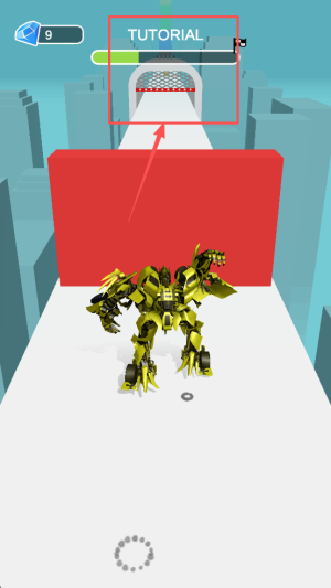 1、开启跑酷准备:进入游戏后熟悉机器人变形规则,明确 “躲避障碍、收集砖石” 目标,了解关卡通关条件与皮肤兑换机制。