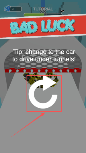 3、途中遇隧道时按提示“change to the car”换车低穿通过。