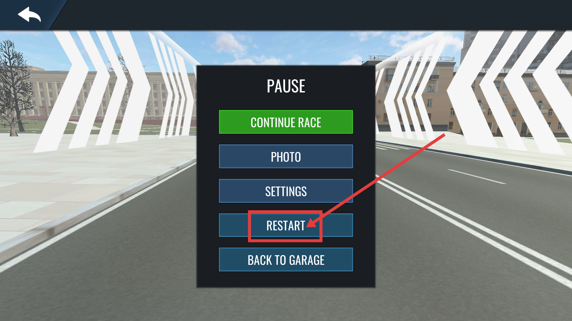 4、若比赛失误,在暂停界面点击【RESTART】重新开始比赛,快速重启挑战以刷新成绩。