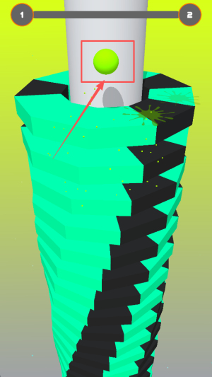 1、开启闯关准备:进入游戏后熟悉小球方向控制,明确 “避黑块、坠平台” 目标,了解螺旋平台突破规则与金币获取方式。
