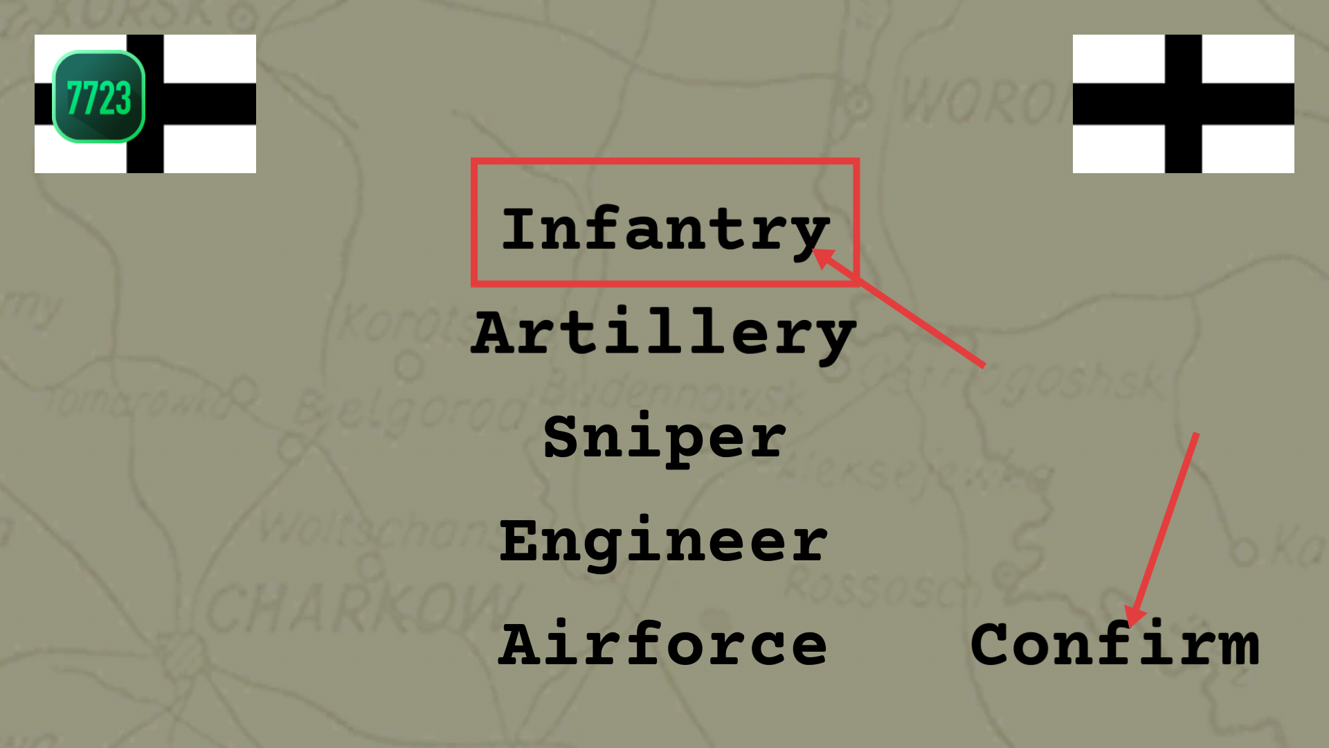 1、选择【Infantry】后点击【Confirm】,确定步兵部队,开启战役,可优先熟悉步兵作战机制。