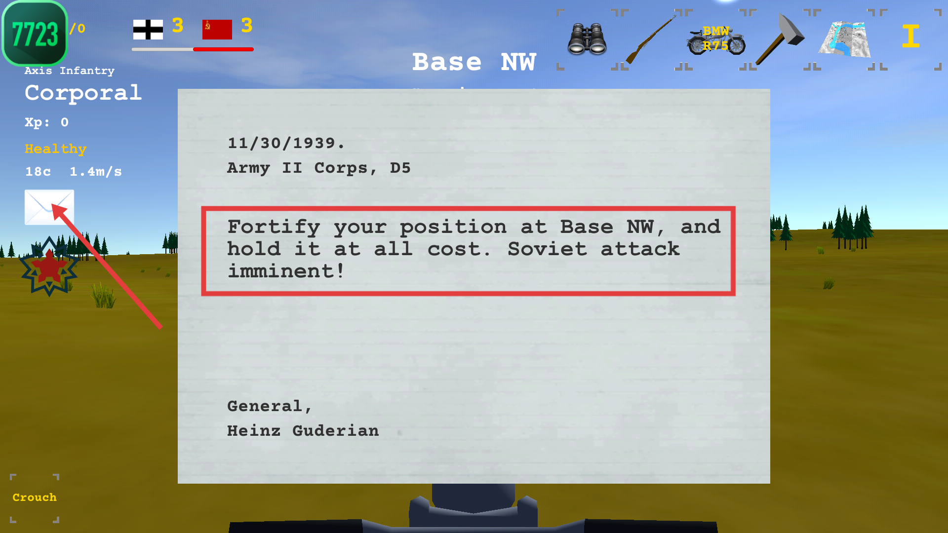 4、查看邮件,执行【Fortify-your-position-at-Base-NW】命令,全力坚守基地,抵御苏联进攻。