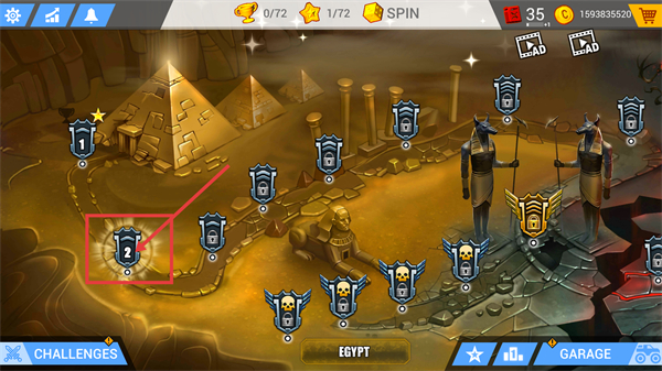 1、选择【关卡-2】开始游戏,该关卡以埃及为背景,包含金字塔、狮身人面像等元素,开启冒险挑战。