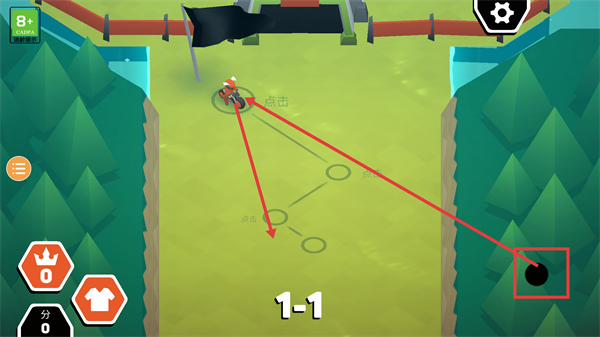 1、在【1-1】关卡中,点击摩托车的路径点,引导摩托车驶向【黑色洞口】,完成初始关卡的路径操作,开启冒险。
