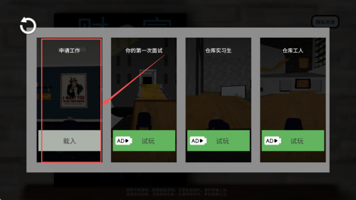 2、选择工作:在工作选择界面,点击“申请工作”按钮,选择你想要尝试的工作。