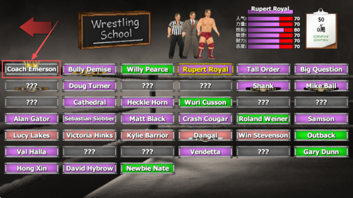 3、选择摔跤手:在摔跤学校界面,选择一个摔跤手开始你的训练。