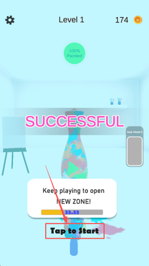 4、完成后点“Tap to start”进入新区域,随时Keep playing解锁更多关卡。