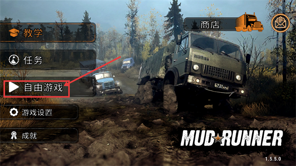 1、点击【自由游戏】进入游戏,开启越野卡车驾驶的自由体验,探索泥泞地形的驾驶乐趣。