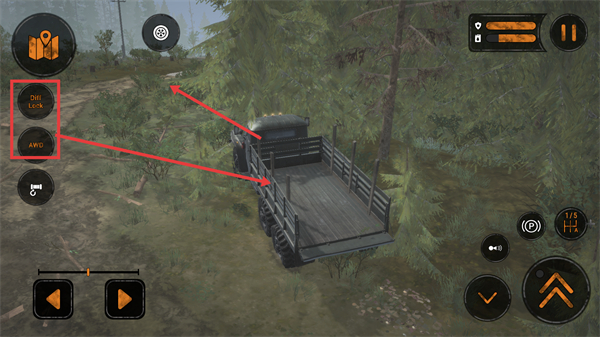 4、开启【Diff-Lock】和【AWD】功能,增强车辆在复杂地形的通过性,助力顺利完成越野任务。