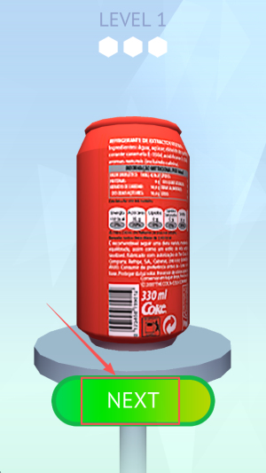 4、完成操作:在LEVEL1 330ml Coke界面点击NEXT按钮,即可通关并进入下一关。