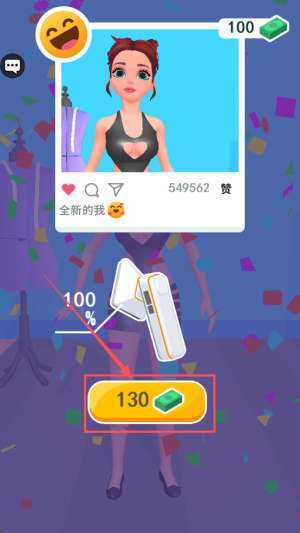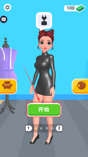 2、选择关卡:在游戏界面中,点击“100”处的“开始”按钮,进入裁剪裙子第一关。