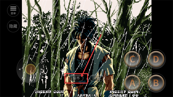 1、进入游戏界面后,点击【投币】,开启经典格斗游戏的对战征程。