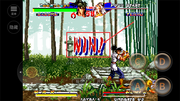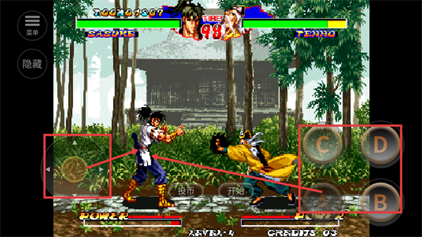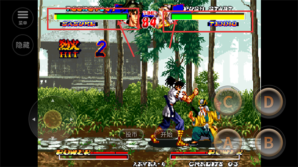 2、战斗时利用方向键操控角色,结合【A】【B】【C】【D】按键释放招式,与对手展开格斗。