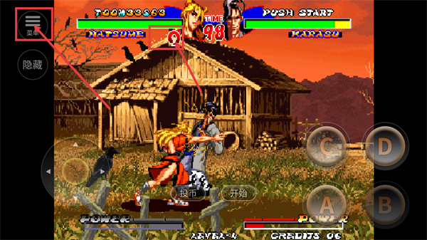 3、战国氛围通过细节拉满,角色出招时的日语喊招、场景中的风声与兵器碰撞音效,全方位唤醒复古街机的沉浸记忆。
