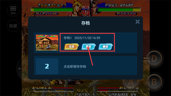 4、在菜单中选择【存档】,可对【存档1】进行读档、覆盖或删除操作,保存游戏进度以便后续继续挑战。