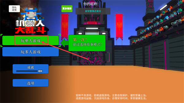 1、点击【玩单人游戏】,第一次建议选择故事模式,开启机器人战斗的单人征程。