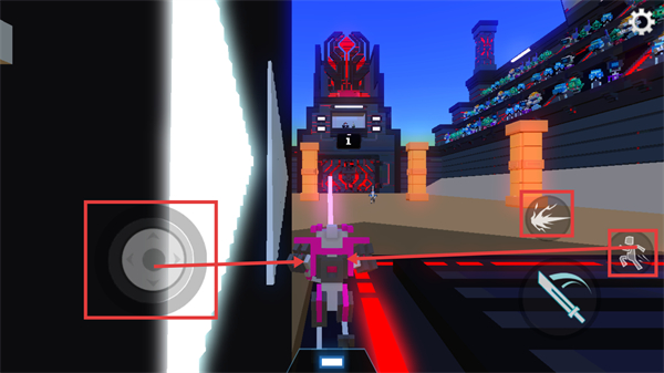 2、战斗时用左侧方向键操控机器人移动,结合右侧【奔跑】【技能】键,灵活走位应对战斗。