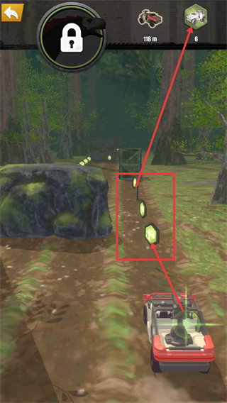 3、沿途收集绿色道具,同时关注车辆收集进度,积累资源助力恐龙DNA收集任务。