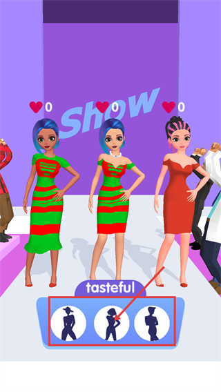3、在秀场选择【tasteful】风格对应的造型,参与时尚展示,与其他设计师作品同台竞技。
