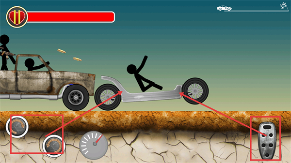 2、驾驶时操作转向和油门按钮,应对敌人车辆攻击,保持车辆正常行驶。