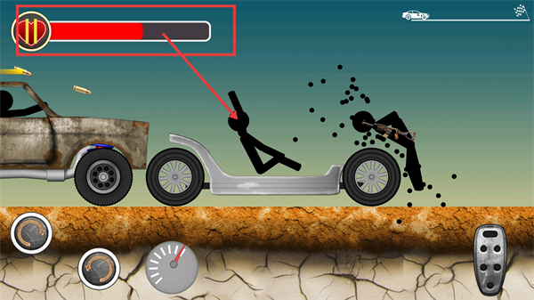 3、关注左上角血量条,躲避敌人攻击,避免火柴人角色受损,影响游戏进程。