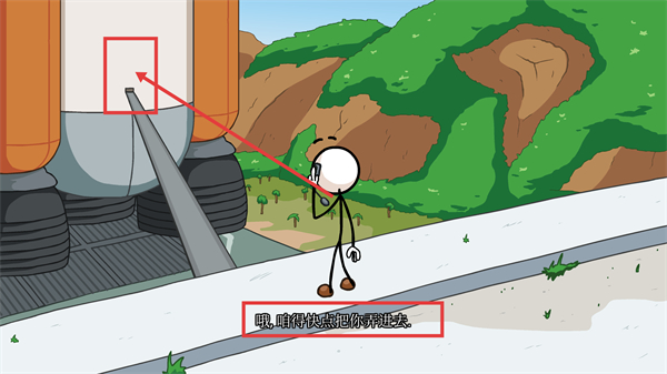 1、在火箭场景中,留意对话提示【哦,咱得快点把你弄进去】,关注火箭区域,为后续进入做准备。