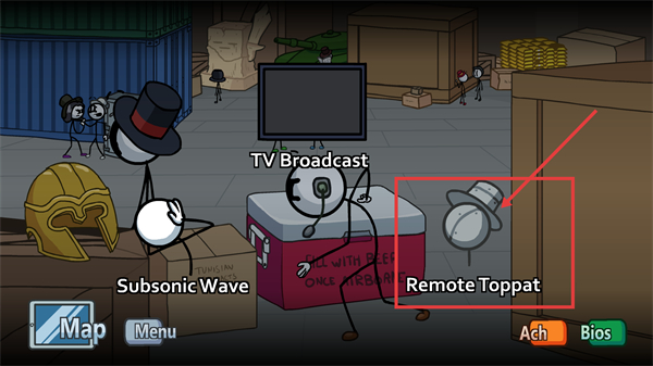 2、利用【TV-Broadcast】【Subsonic-Wave】【Remote-Toppat】等道具,与场景互动,推进礼帽帮相关剧情任务。