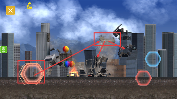 4、观察建筑破坏后的成果,持续使用道具,完成城市破坏任务,提升游戏的进度与成就。